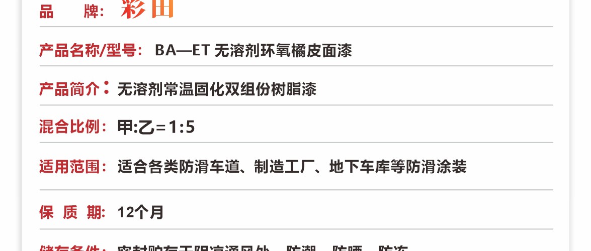 彩田BA-601無溶劑環氧彩砂自流地坪漆