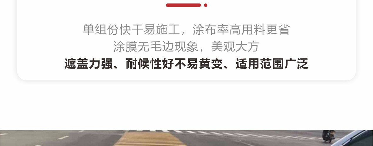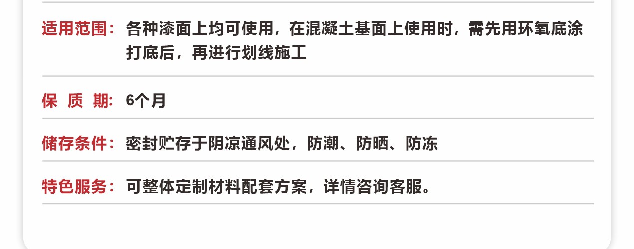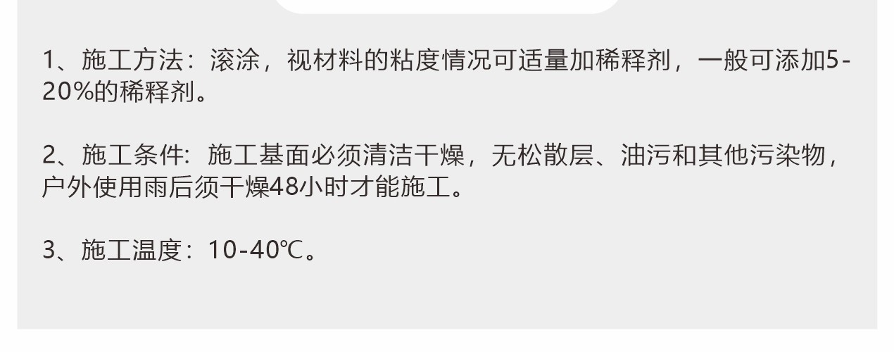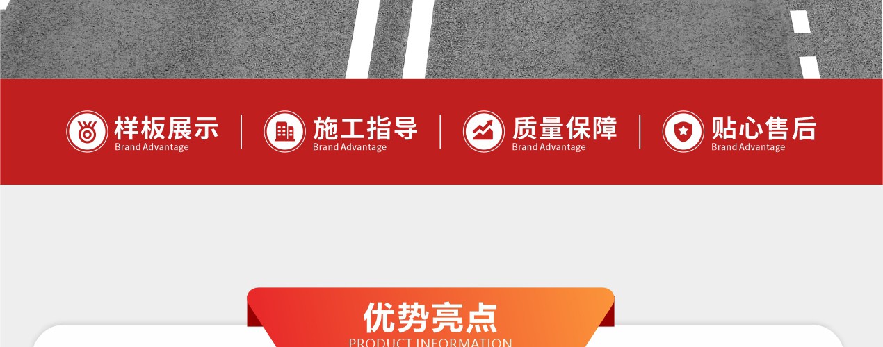是由新型純丙烯酸樹脂與優質顏料,進口優良助劑組成。該材料施工方便,無需大型設備,快速固化成堅韌的漆膜,其與底材具有優異的附著力,耐壓、耐磨損、耐候性好,可調配多種顏色。