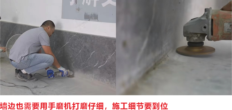 基層處理與完成地坪質(zhì)量密切相關(guān)。使用專業(yè)的無(wú)塵混凝土研機(jī)和手提磨機(jī)進(jìn)行表面處理,清除地面上舊的涂層,需要的區(qū)域可采用銑刨機(jī)、拋丸機(jī)進(jìn)行處理。