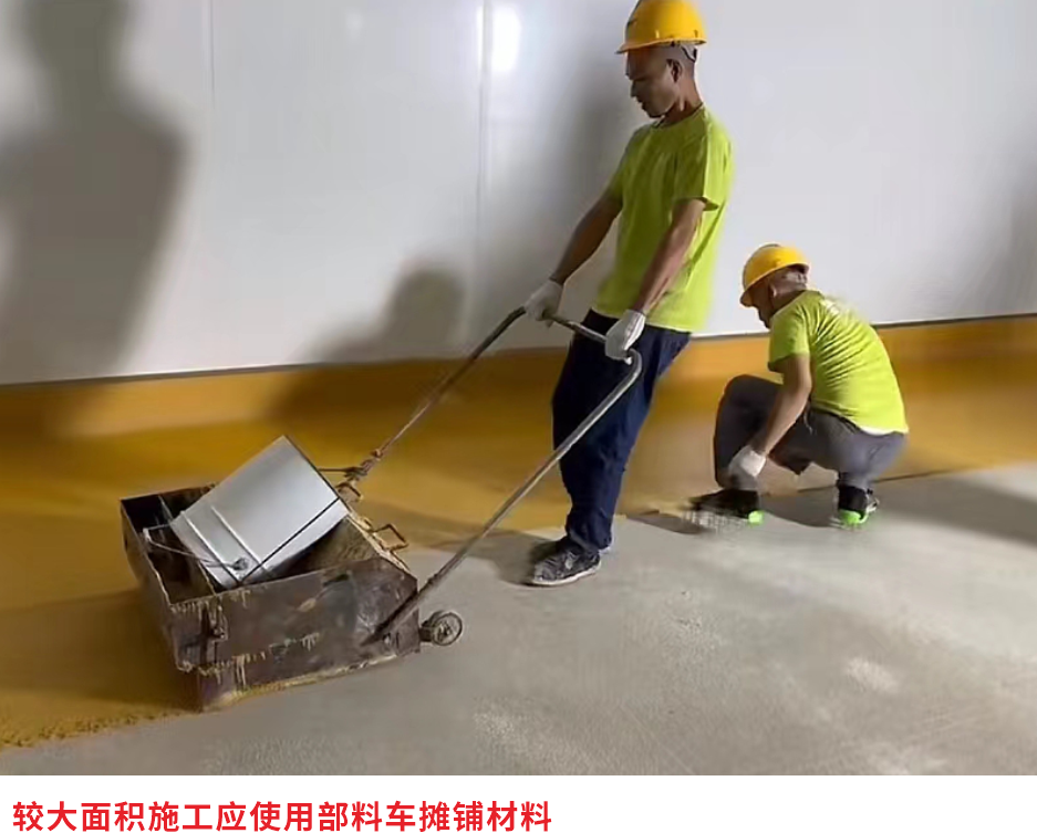 面層施工避免在結(jié)露天氣進(jìn)行。材料的最佳使用溫度為15℃-30℃,必須使用機(jī)械混合。
