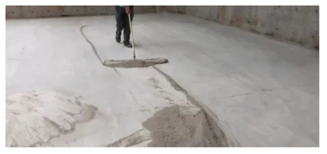 4)按配合比例配合攪拌均勻后,無放置時間要求直接施工用批刀倒退施工,視面積大小確定施工人員數;