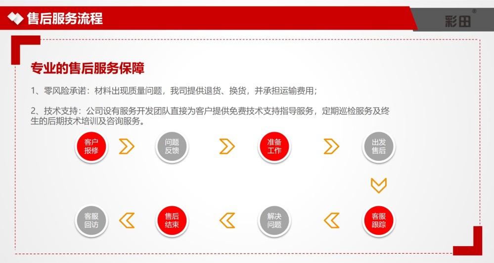 高品質有保障,彩田的工程涂裝體系體系能夠覆蓋不同場景的施工需求,是您的不二之選。如有材料出現質量問題,彩田提供退貨、換貨、并承擔運輸費用。