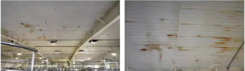 施工前認(rèn)真檢查金屬內(nèi)頂棚 ,確保金屬屋內(nèi)頂棚牢固、無銹蝕,無積水、粉塵、油跡、污垢物及其它松散物。不符合上述條件應(yīng)分別作如下處理: