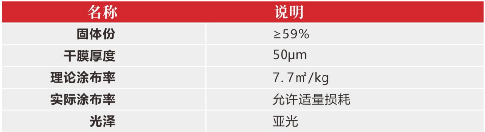 5、施工環(huán)境溫度≥10℃,濕度≤85%,并且施工工件表面溫度大于露點(diǎn)溫度3℃。技術(shù)參數(shù)如下: