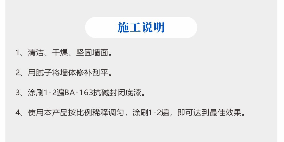 1、抗堿封閉底漆是一種抗堿性能力極強(qiáng)的水性乳膠漆底漆,施工性能優(yōu)良、流平性佳。 2、墻體附著力極佳,防水份滲漏好,抗藻類滋生能力強(qiáng),可精心呵護(hù)墻體。 3、專為家庭裝修、工程建筑等內(nèi)外墻面基礎(chǔ)裝飾而設(shè)計(jì)。